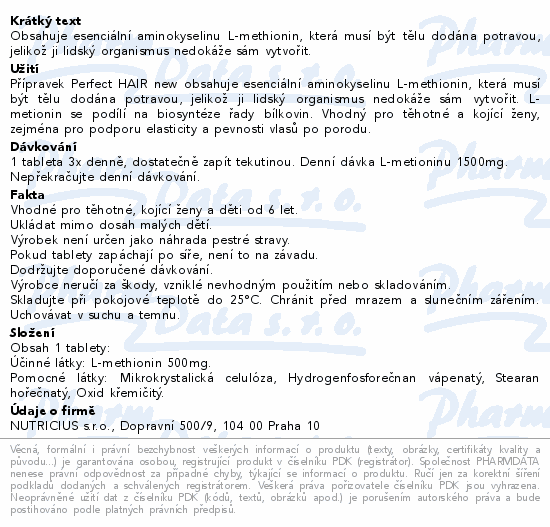 Perfect HAIR new-methionin 500mg tbl.100