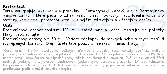Tento set spojuje dva ikonické produkty – Rozmarýnový vlasový olej a Rozmarýnové vlasové tonikum, které pečují o zdraví vašich vlasů i pokožky hlavy. Ideální volba pro všechny, kdo hledají přirozenou cestu k silnějším, zdravějším a krásnějším vlasům.