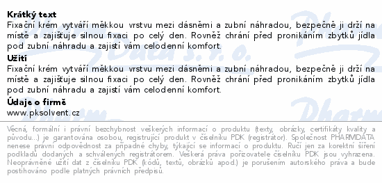 Fixační krém vytváří měkkou vrstvu mezi dásněmi a zubní náhradou, bezpečně ji drží na místě a zajišťuje silnou fixaci po celý den. Rovněž chrání před pronikáním zbytků jídla pod zubní náhradu a zajistí vám celodenní komfort.