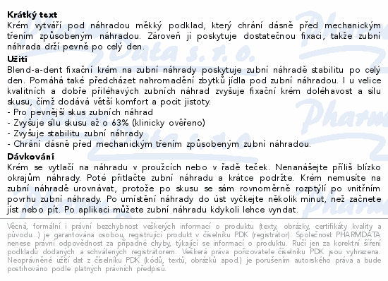 Krém vytváří pod náhradou měkký podklad, který chrání dásně před mechanickým třením způsobeným náhradou. Zároveň jí poskytuje dostatečnou fixaci, takže zubní náhrada drží pevně po celý den.