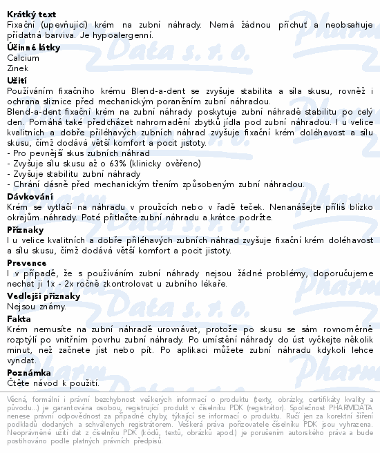 Fixační (upevňující) krém na zubní náhrady. Nemá žádnou příchuť a neobsahuje přídatná barviva. Je hypoalergenní.