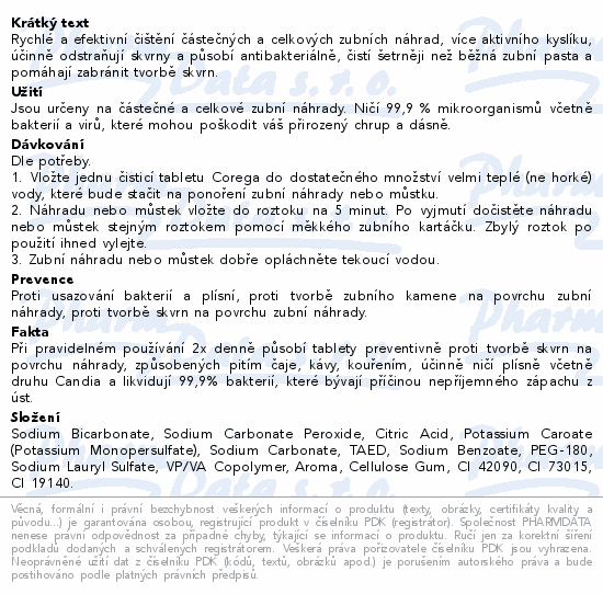 Rychlé a efektivní čištění částečných a celkových zubních náhrad, více aktivního kyslíku, účinně odstraňují skvrny a působí antibakteriálně, čistí šetrněji než běžná zubní pasta a pomáhají zabránit tvorbě skvrn.