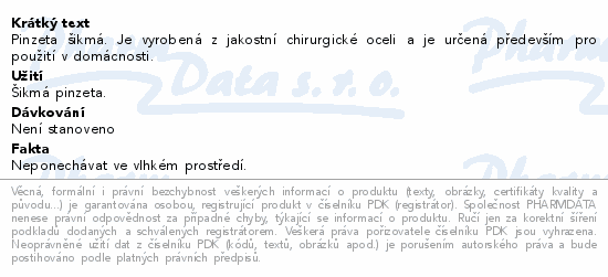 Pinzeta šikmá. Je vyrobená z jakostní chirurgické oceli a je určená především pro použití v domácnosti.
