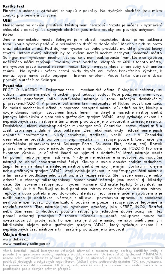 Pinzeta je určena k vytrhávání chloupků z pokožky. Na styčných plochách jsou mikro zoubky pro pevnější uchycení.
