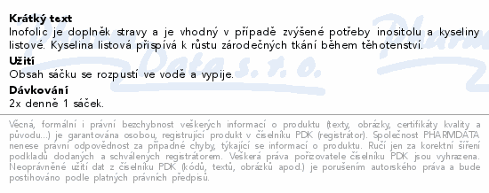 Inofolic je doplněk stravy a je vhodný v případě zvýšené potřeby inositolu a kyseliny listové. Kyselina listová přispívá k růstu zárodečných tkání během těhotenství.