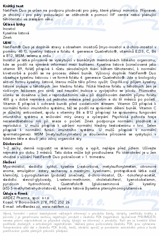 NatiFem Duo je určen na podporu plodnosti pro páry, které plánují miminko. Přípravek je vhodný i pro páry pokoušející se otěhotnět s pomocí IVF centra nebo plánující těhotenství ve zralejším věku.