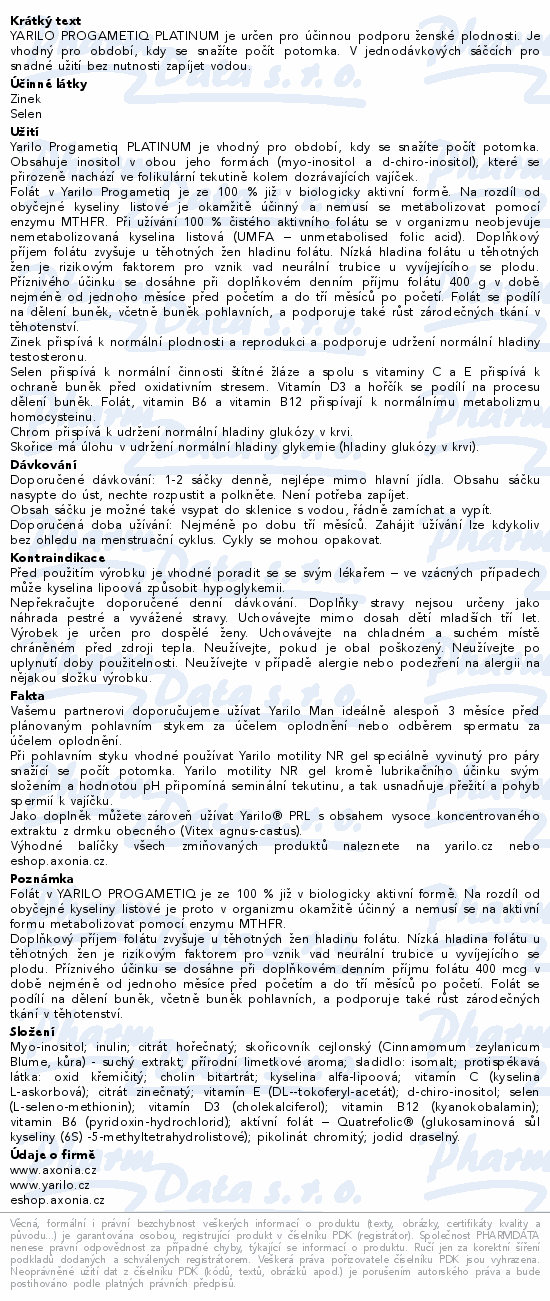 YARILO PROGAMETIQ PLATINUM je určen pro účinnou podporu ženské plodnosti. Je vhodný pro období, kdy se snažíte počít potomka. V jednodávkových sáčcích pro snadné užití bez nutnosti zapíjet vodou.
