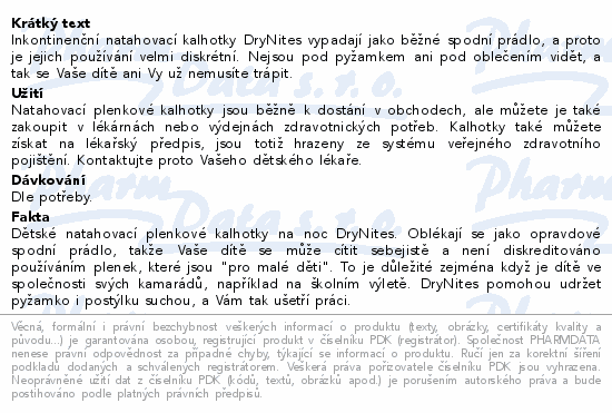 Inkontinenční natahovací kalhotky DryNites vypadají jako běžné spodní prádlo, a proto je jejich používání velmi diskrétní. Nejsou pod pyžamkem ani pod oblečením vidět, a tak se Vaše dítě ani Vy už nemusíte trápit.
