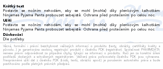 Postavte se nočním nehodám, aby se mohl (mohla) díky plenkovým kalhotkám Ninjamas Pyjama Pants probouzet sebejistě. Ochrana před protečením po celou noc.
