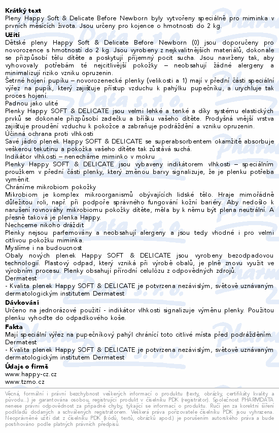 Pleny Happy Soft & Delicate Before Newborn byly vytvořeny speciálně pro miminka v prvních měsících života. Jsou určeny pro kojence o hmotnosti do 2 kg.