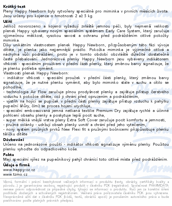 Pleny Happy Newborn byly vytvořeny speciálně pro miminka v prvních měsících života. Jsou určeny pro kojence o hmotnosti 2 až 5 kg.