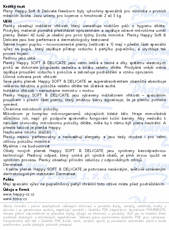 Pleny Happy Soft & Delicate Newborn byly vytvořeny speciálně pro miminka v prvních měsících života. Jsou určeny pro kojence o hmotnosti 2 až 5 kg.