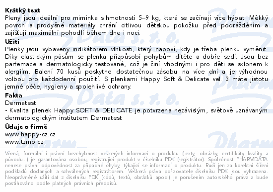 Happy Soft&Delicate 3 dětské pleny 5-9kg 70ks