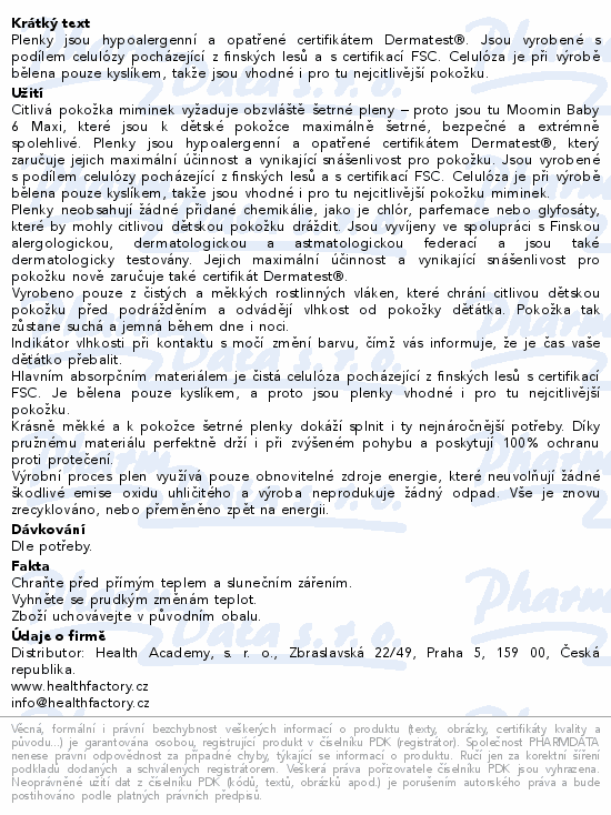 Plenky jsou hypoalergenní a opatřené certifikátem Dermatest®. Jsou vyrobené s podílem celulózy pocházející z finských lesů a s certifikací FSC. Celulóza je při výrobě bělena pouze kyslíkem, takže jsou vhodné i pro tu nejcitlivější pokožku.