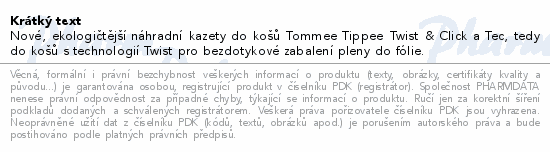 Nové, ekologičtější náhradní kazety do košů Tommee Tippee Twist & Click a Tec, tedy do košů s technologií Twist pro bezdotykové zabalení pleny do fólie.