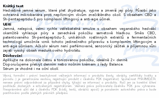 Hedvábně jemné sérum, které pleť zhydratuje, vypne a zmenší její póry. Působí jako ochranná mikrobariéra proti nepříznivým vlivům znečištěného okolí. S obsahem CBD a Sh-pentapeptidu-5 pro komplexní liftingový a anti-age účinek.