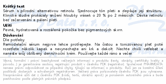 Sérum s přírodní alternativou retinolu. Sjednocuje tón pleti a zlepšuje její strukturu. Klinické studie prokázaly snížení hloubky vrásek o 20 % po 2 měsících. Dávka retinolu bez začervenání a pálení pleti.