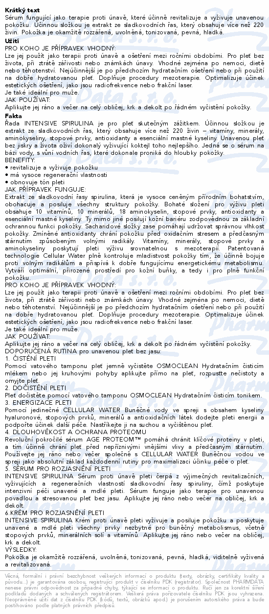 Sérum fungující jako terapie proti únavě, které účinně revitalizuje a vyživuje unavenou pokožku. Účinnou složkou je extrakt ze sladkovodních řas, který obsahuje více než 220 živin. Pokožka je okamžitě rozzářená, uvolněná, tonizovaná, pevná, hladká.
