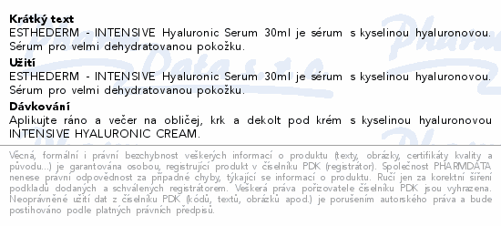 ESTHEDERM - INTENSIVE Hyaluronic Serum 30ml je sérum s kyselinou hyaluronovou. Sérum pro velmi dehydratovanou pokožku.