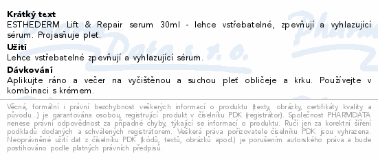ESTHEDERM Lift & Repair serum 30ml - lehce vstřebatelné, zpevňují a vyhlazující sérum. Projasňuje pleť.