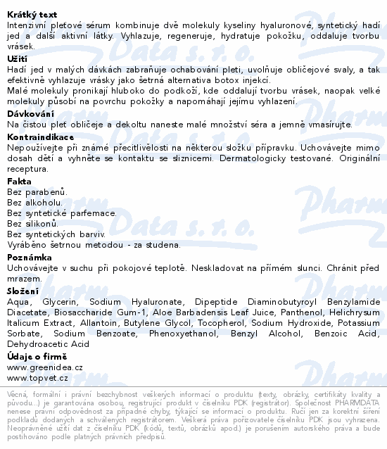 Green idea Hyaluronové sérum s hadím jedem 25ml
