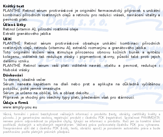 PLANTHÉ Retinol sérum protivráskové je originální farmaceutický přípravek s unikátní kombinací přírodních rostlinných olejů a retinolu pro redukci vrásek, navrácení vitality a pevnosti pleti.