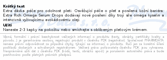 Extra dávka péče pro odolnost pleti. Osvěžující péče o pleť a posílená kožní bariéra: Extra Rich Omega Serum Drops dodávají nové posílení díky trojí síle omega kyselin a intenzivně vyživujícímu avokádovému oleji.
