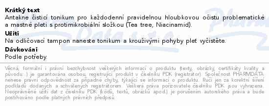 Antakne čisticí tonikum pro každodenní pravidelnou hloubkovou očistu problematické a mastné pleti s protimikrobiální složkou (Tea tree, Niacinamid).
