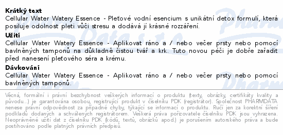 Cellular Water Watery Essence - Pleťové vodní esencium s unikátní detox formulí, která posiluje odolnost pleti vůči stresu a dodává jí krásné rozzáření.