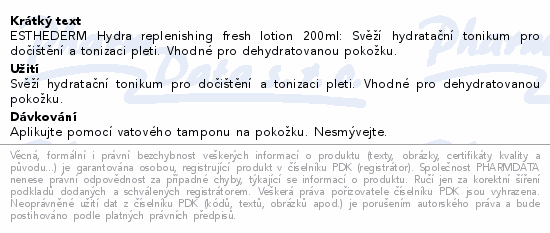 ESTHEDERM Hydra replenishing fresh lotion 200ml: Svěží hydratační tonikum pro dočištění a tonizaci pleti. Vhodné pro dehydratovanou pokožku.