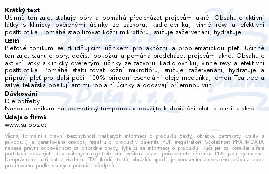Účinně tonizuje, stahuje póry a pomáhá předcházet projevům akné. Obsahuje aktivní látky s klinicky ověřenými účinky ze zázvoru, kadidlovníku, vinné révy a efektivní postbiotika. Pomáhá stabilizovat kožní mikroflóru, snižuje začervenání, hydratuje.