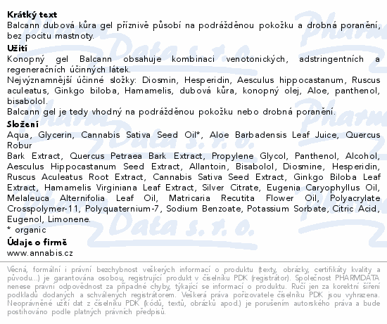 Balcann dubová kůra gel příznivě působí na podrážděnou pokožku a drobná poranění, bez pocitu mastnoty.