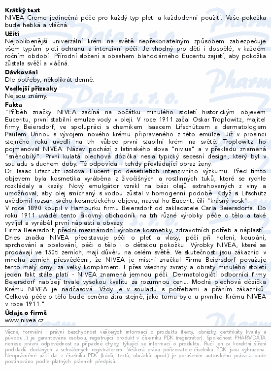 NIVEA Creme jedinečná péče pro každý typ pleti a každodenní použití. Vaše pokožka bude hebká a vláčná.