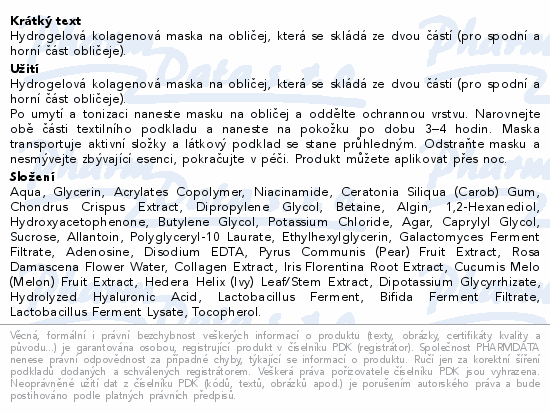 Hydrogelová kolagenová maska na obličej, která se skládá ze dvou částí (pro spodní a horní část obličeje).