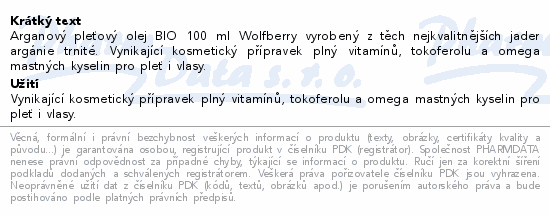 Arganový kosmetický olej BIO 100ml Wolfberry