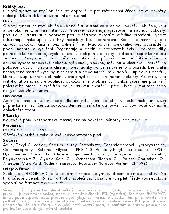 Olejový syndet na mytí obličeje se doporučuje pro každodenní čištění citlivé pokožky obličeje, krku a dekoltu, se známkami stárnutí.