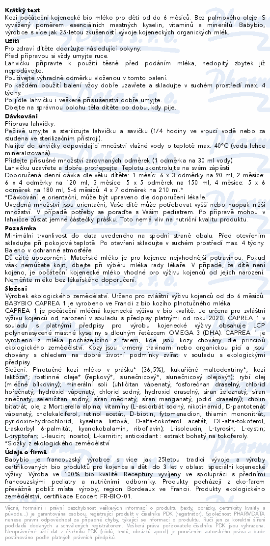 Kozí počáteční kojenecké bio mléko pro děti od 0 do 6 měsíců. Bez palmového oleje. S vyvážený poměrem esenciálních mastných kyselin, vitaminů a minerálů. Babybio, výrobce s více jak 25-letou zkušeností vývoje kojeneckých organických mlék.