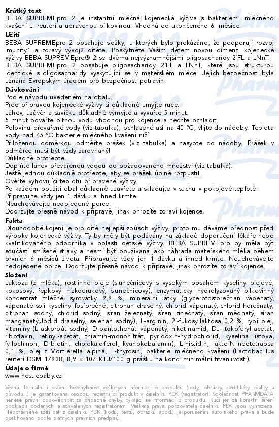 BEBA SUPREMEpro 2 je instantní mléčná kojenecká výživa s bakteriemi mléčného kvašení L. reuteri a upravenou bílkovinou. Vhodná od ukončeného 6. měsíce.