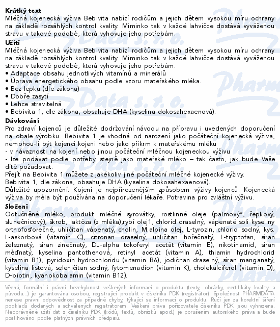 Mléčná kojenecká výživa Bebivita nabízí rodičům a jejich dětem vysokou míru ochrany na základě rozsáhlých kontrol kvality. Miminko tak v každé lahvičce dostává vyváženou stravu v takové podobě, která vyhovuje jeho potřebám.