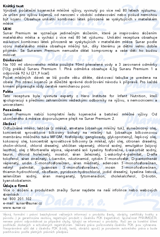 Sunar Premium 1 700g