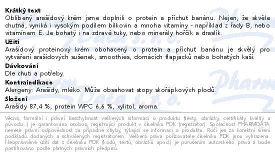 Oblíbený arašídový krém jsme doplnili o protein a příchuť banánu. Nejen, že skvěle chutná, vyniká i vysokým podílem bílkovin a mnoha vitamíny - například z řady B, nebo vitamínem E. Je bohatý i na zdravé tuky, nebo minerály hořčík a draslík.