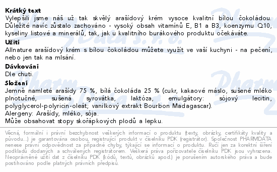 Vylepšili jsme náš už tak skvělý arašídový krém vysoce kvalitní bílou čokoládou. Důležité navíc zůstalo zachováno - vysoký obsah vitamínů E, B1 a B3, koenzymu Q10, kyseliny listové a minerálů, tak, jak u kvalitního burákového produktu očekáváte.