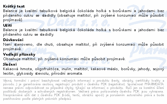 Balance je kvalitní tabulková belgická čokoláda hořká s borůvkami a jahodami bez přidaného cukru se sladidly.