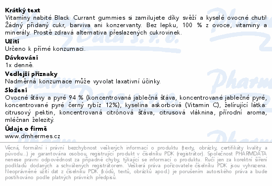 Vitamíny nabité Black Currant gummies si zamilujete díky svěží a kyselé ovocné chuti! Žádný přidaný cukr, barviva ani konzervanty. Bez lepku, 100 % z ovoce, vitaminy a minerály. Prostě zdravá alternativa přeslazených cukrovinek.