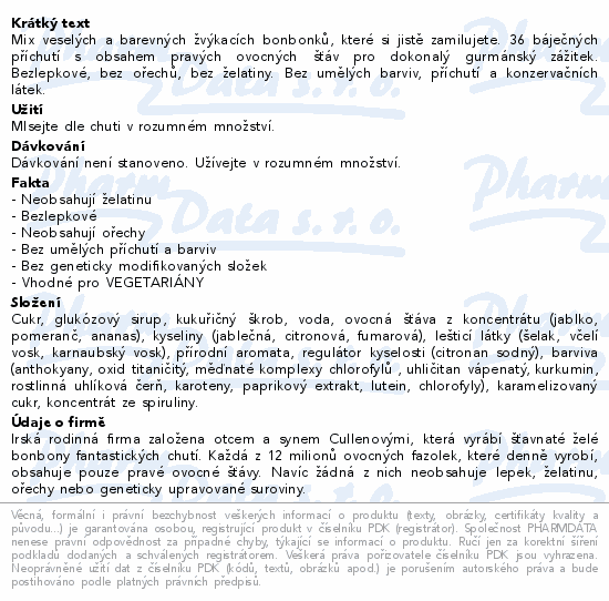 Mix veselých a barevných žvýkacích bonbonků, které si jistě zamilujete. 36 báječných příchutí s obsahem pravých ovocných šťáv pro dokonalý gurmánský zážitek. Bezlepkové, bez ořechů, bez želatiny. Bez umělých barviv, příchutí a konzervačních látek.