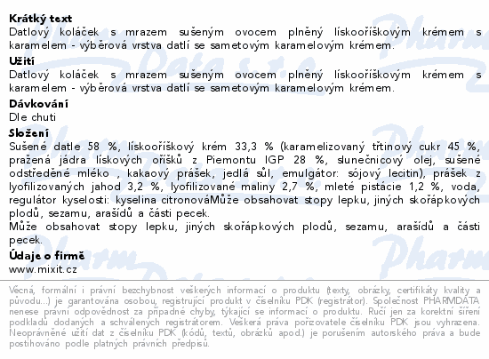 Datlový koláček s mrazem sušeným ovocem plněný lískooříškovým krémem s karamelem - výběrová vrstva datlí se sametovým karamelovým krémem.