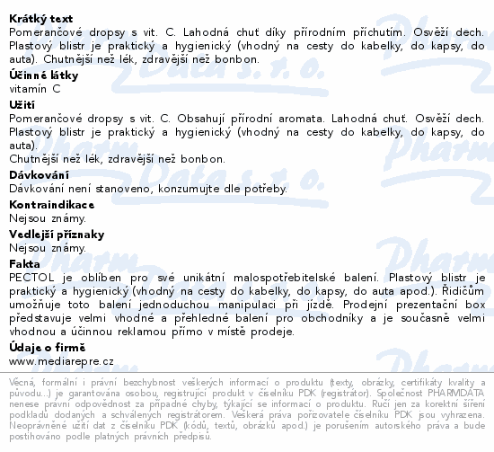 Pectol pomerančový drops s vit.C box 24 blistrů