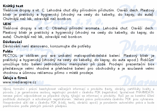 Třešňové dropsy s vit. C. Lahodná chuť díky přírodním příchutím. Osvěží dech. Plastový blistr je praktický a hygienický (vhodný na cesty do kabelky, do kapsy, do auta). Chutnější než lék, zdravější než bonbon.