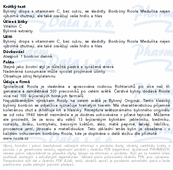 Bylinný drops s vitaminem C, bez cukru, se sladidly. Bonbóny Ricola Meduňka nejen výborně chutnají, ale také osvěžují vaše hrdlo a hlas.