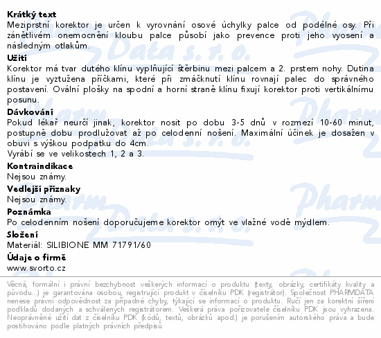 Meziprstní korektor je určen k vyrovnání osové úchylky palce od podélné osy. Při zánětlivém onemocnění kloubu palce působí jako prevence proti jeho vyosení a následným otlakům.